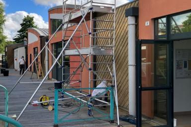 Rénovation des bâtiments communaux Au fil du temps, les différents bâtiments de la commune sont rénovés pour garantir leur utilisation et pour diminuer leur impact environnemental (isolation, éclairage...). Petit tour des travaux réalisés Mise à jour le 17 février 2023 Travaux à la mairie Peintures pendant l'été Eclairage LED de la salle des fêtes Changement des abat-sons du clocher de l'église Changement des huisseries des salles communales Pare-ballon et portes des vestiaires au stade Aménagement de l'accès de la Mairie pour les PMR